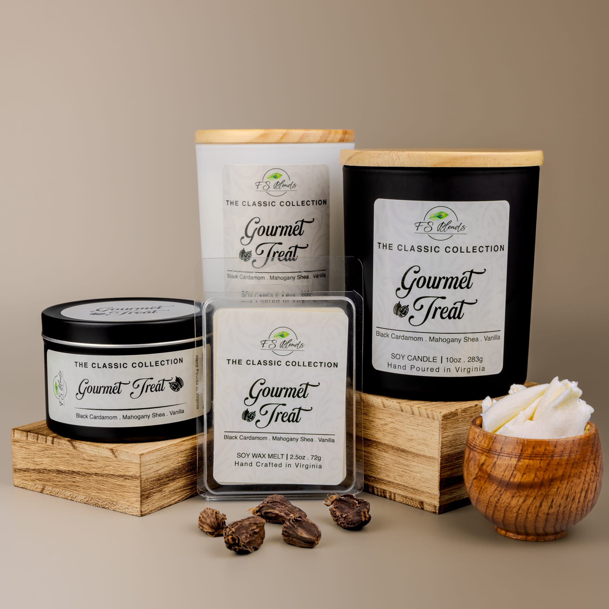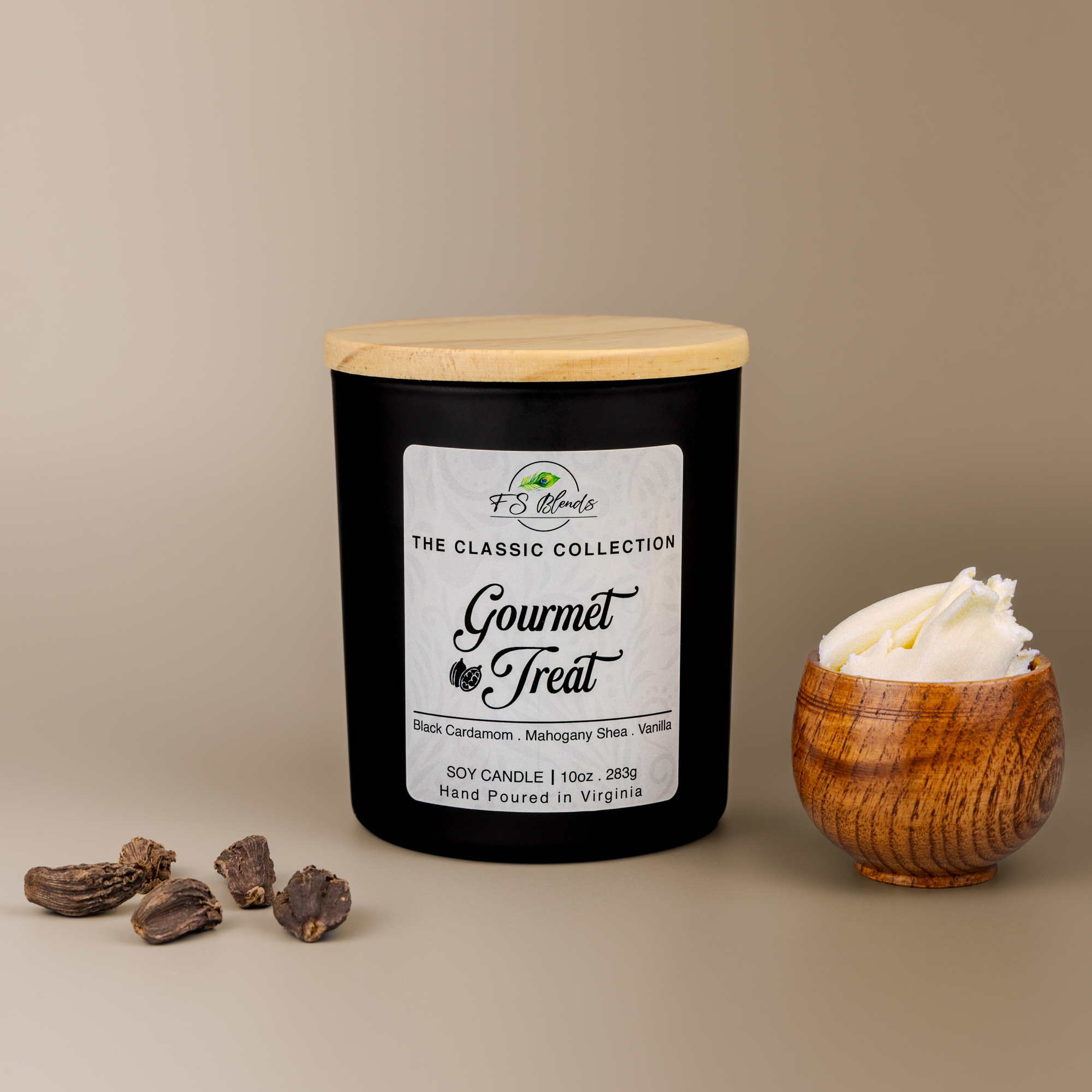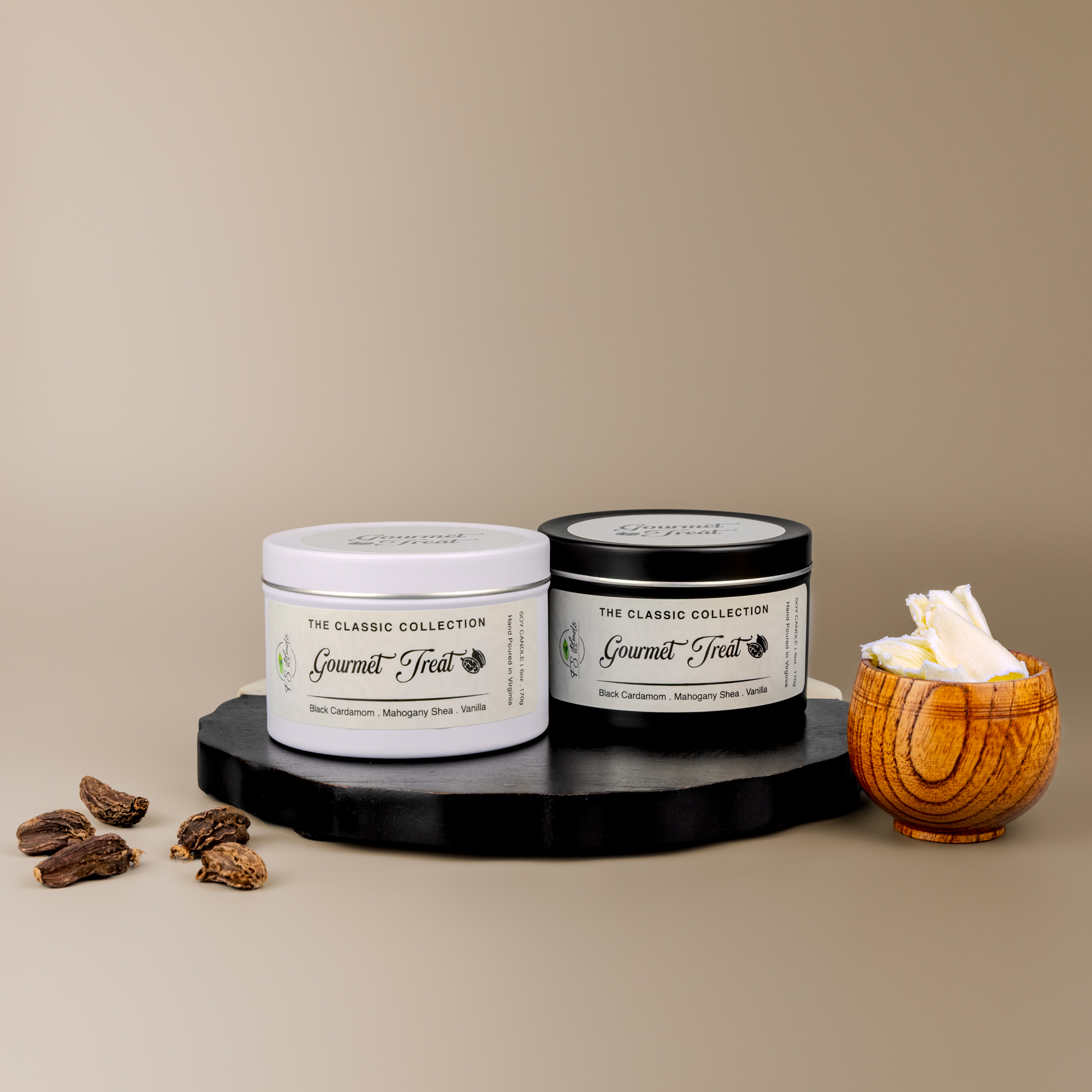 Black Cardamom. Mahogany Shea. Vanilla